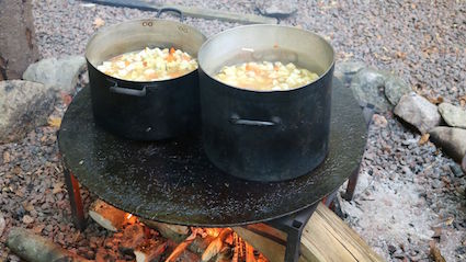 Når kvelden kommer blir det godt å legge seg til å sove i en av gapahukene. Alle med gulv, tak og 3 vegger, men ingen dør. På den måten sover du både ute og inne samtidig. Og alle lyder fra skogen har du rett ved der du sover. Ett av husene kalles Kråkeslottet, og ligner også ett.....