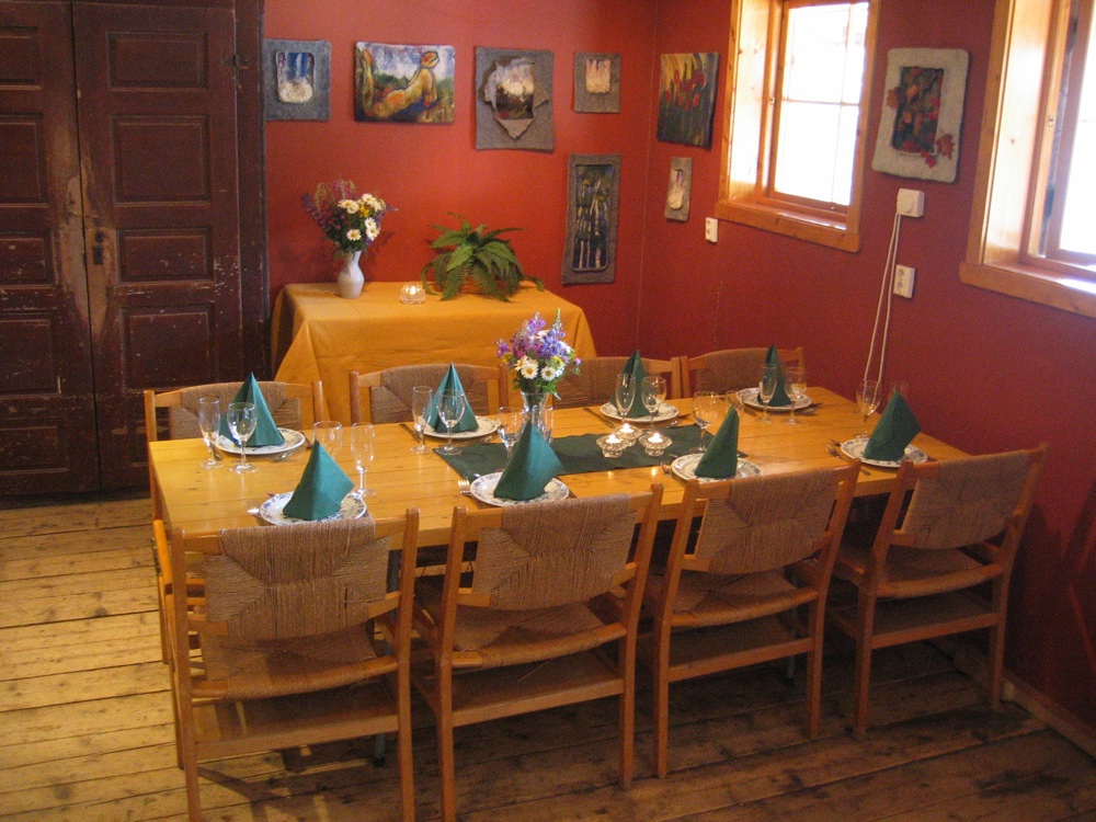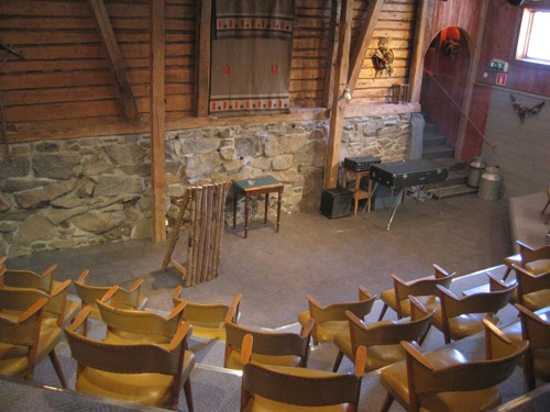 I den gamle låven er det i underetasjen et amfi i den gamle høyløa. Og det er en stue i det gamle fjøset. Fjøsstua er pusset opp med gjenbruksmaterialer fra låvens gamle ytterkledning og takplank. Hyllene til bøker er også laget av gammel takplank. Begge rom med plass til opptil 70 stk på kurs.